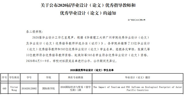 本网讯(记者 谢晓敏)青青石板,印过他的匆匆足迹;如茵球场,浸过他的淋漓汗水;明辨湖畔,听过他的朗朗书声;书香课室,留过他的孜孜身影。四年间,他漫步在华广的每一处角落,既安坐课室与图书馆的寂寂学海,又纵享绿茵球场的驰骋飞扬。或许,擦身而过间,他并不会引起你的特别注意,但是,在2020届优秀毕业设计(论文)学生名单上,他特别的名字定会吸引你的视线。国际商学院国际学生“Victor Wong”,这个由字母组成的名字和荣誉背后,不仅是他个人踏平困难的见证,更是我校国际化办学特色的写照。