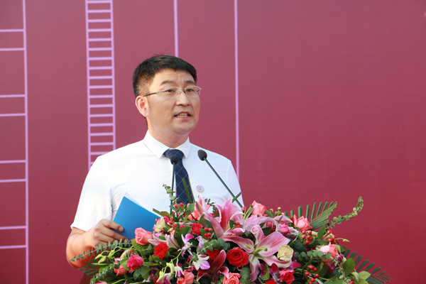 南粤优秀教师岳素伟博士作为教师代表在2021级新生开学典礼上致辞(邹春梅 摄)