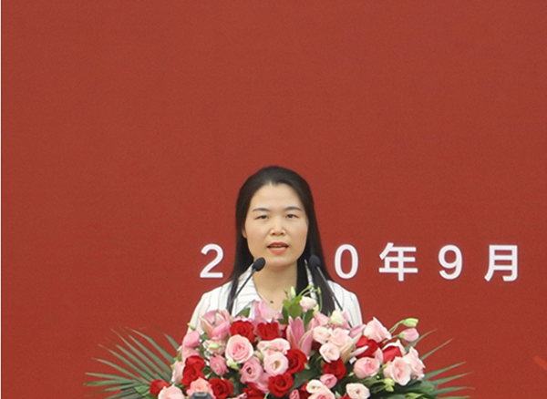 王业雯老师在2020级新生开学典礼上发言(赵晶 摄)