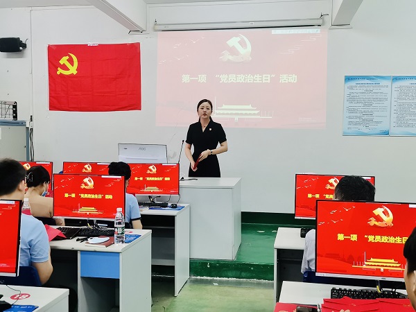 活动以为新党员佩戴党徽、新党员入党宣誓、老党员重温入党誓词、赠送政治生日贺卡、书记致辞等形式开展。全体党员在领誓人任春雯书记的带领下重温了入党誓词,再一次许下了对党忠诚的坚定承诺。