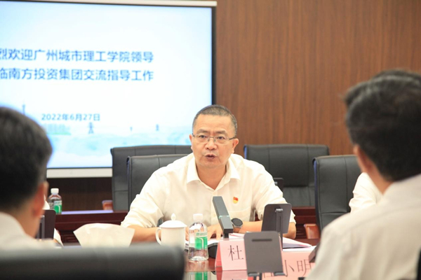 本网讯(记者 许晗星)为了充分发挥党建引领作用,高质量推动校企互联互动,巩固深化校企合作,进一步提升人才培养质量,6月27日下午,我校党委书记杜小明带队到广州南方投资集团有限公司走访调研,受到广州南方投资集团有限公司董事长、党委书记杜庆荣,党委副书记、工会主席毛为民等人的热情接待。电气工程学院院长赵杰、书记张郡,顾问张尧,副院长沈娜、相关教研室负责人等一同调研。
