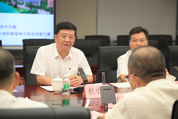杜小明作讲话,“非常高兴参与这样一次党建活动。今天来到企业,首先是拜访感谢,通过走访,让我们感受到企业对教育的重视、对学校的重视和对人才的重视,感谢企业为学校的人才培养提供了平台,让学生可以在实习、就业中获得成长,这也体现了企业为国家培养人才,为企业发展聚集人才,积极服务国家重大战略需求,为民族振兴增添光辉的情怀。第二是学习问计,刚才我们一起参观了数字电网科技展厅,很开眼界,很长知识,很受启发。”他指出,企业是创新的主体,广州南方投资集团一直走在科技应用的前沿,为广州经济社会的发展,为广大人民群众的生活,为大中小企业的发展提供了电力支持。“广东是改革开放的排头兵、先行地、实验区,我们要共同培养具有‘排头兵’潜质的人才。”学校作为人才培养的主阵地,还需要向企业学习,共同探讨如何提升人才质量,培养既懂理论又懂实践,服务国家战略的高素质应用型人才。