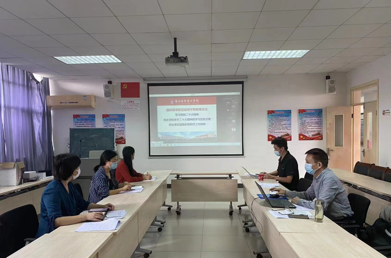 据悉,国际商学院抓紧抓实党的二十大精神的学习宣传贯彻工作,坚持以党的二十大精神为指导,推动学院疫情防控、本科合格评估、师资队伍建设等工作,力争全面完成“十四五”规划发展目标的年度各项重点工作任务,确保党的二十大精神落地生根、开花结果。