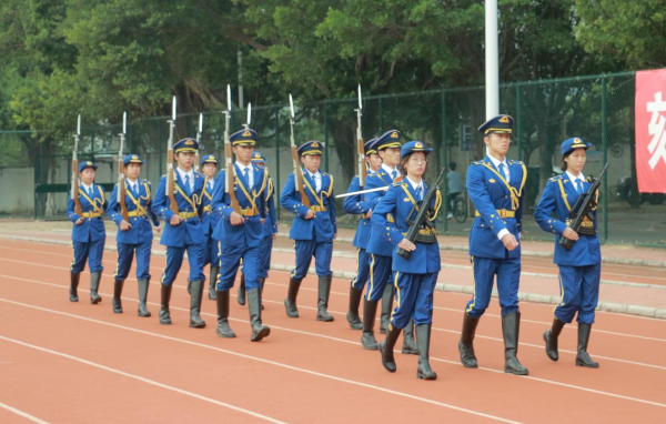 7点50分,升旗仪式正式开始,国旗护卫队迎着朝阳、迈着铿锵的步伐来到国旗台下,手扬起国旗。伴随着雄壮的国歌声,全体师生面向冉冉升起的国旗行注目礼,向伟大祖国致以最崇高的敬意!