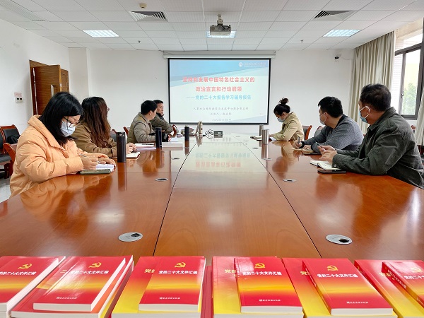 本网讯(记者 黄卉菁)为认真落实学校党委关于深入学习宣传贯彻党的二十大精神工作方案,12月6日,人事处与国交联合党支部在行政楼409党建活动室召开党的二十大精神专题学习会,支部书记赵永林作《坚持和发展中国特色社会主义的政治宣言和行动纲领》党的二十大精神专题学习辅导报告。