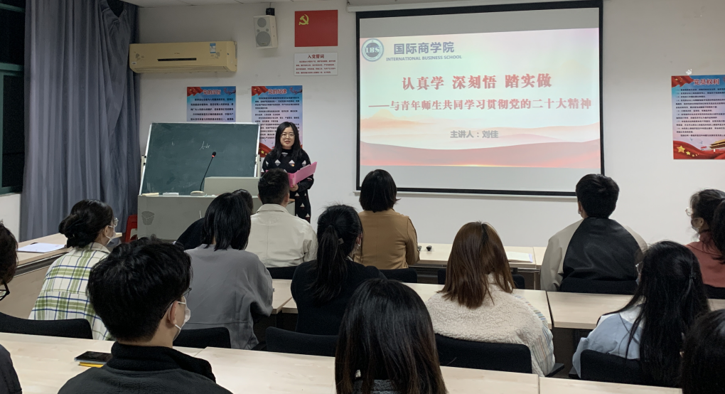 本网讯(记者 胡靖姗)为全面、深入学习贯彻党的二十大精神,引导青年师生积极学、主动学、自觉学,12月8日晚,国际商学院开展了党的二十大精神宣讲暨学生“星火宣讲队”启动成立仪式。学院党总支书记刘佳,学工办全体老师参会。