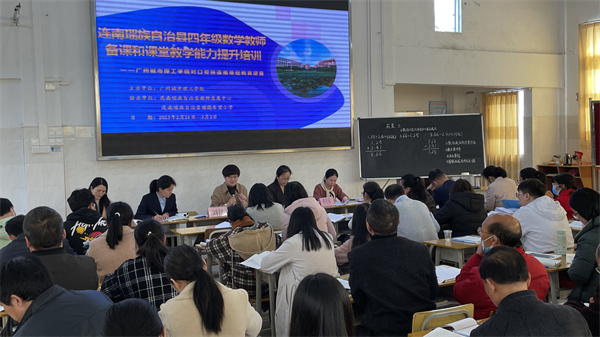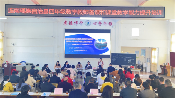 本网讯(记者 谢海燕)3月2日,由我校主办,连南瑶族自治县教师发展中心承办的“连南四年级数学教师备课与课堂教学能力提升培训”顺利落幕,连南县50多名四年级数学教师参加培训。我校教务处处长张星明,连南县教师发展中心主任陈振华等出席培训会。华南师范大学数学科学学院副教授刘喆、广东省外语艺术职业学院基础教育学院副院长林肖丽、东莞市小学数学教研员正高级名师陈晓燕、东莞市小学数学教研员高级教师曾娟林应邀担任培训指导嘉宾。