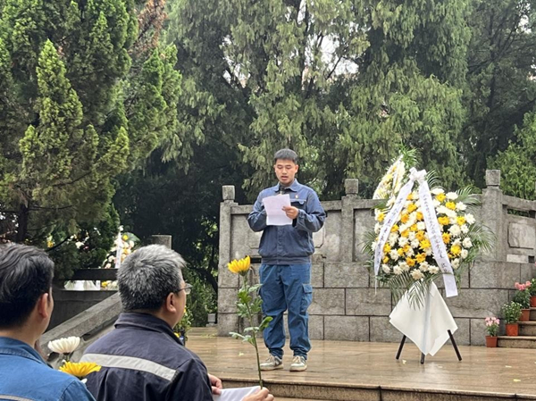 随后,城北公司青年党员代表、我校电气工程学院2020届毕业生胡彬作主题发言:“我们在这庄重的烈士陵园里面缅怀先烈,深切的体会到了今天生活的来之不易。我从求学到现在进入电力行业,一直坚定信念,用自己的力量建设国家,未来要继续发扬老一辈的无产阶级革命家的光荣传统,在学习中勤勉努力、在生活中勇往直前!”