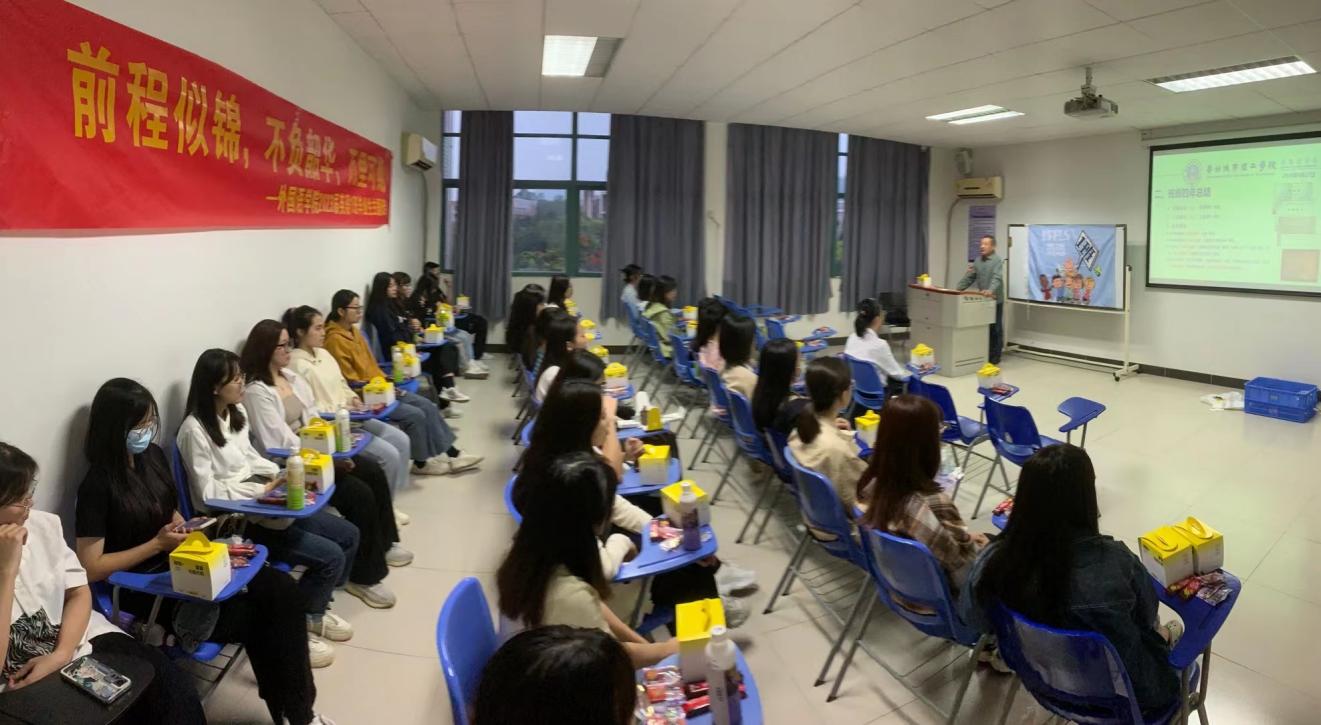 乔世燕副院长走访了2023届英语10-11班、商务英语1-4班。她感叹时光荏苒,表达了对同学们的不舍;随后强调了学习与工作的意义,鼓励大家积极就业,努力实现各自的理想人生。最后祝愿各位同学成为披荆斩棘的哥哥、乘风破浪的姐姐,在未来的人生道路上劈波斩浪,扬帆远航!