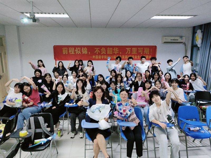大学四年弹指一挥间,同学们从相遇到相识,从相识到相知,有过开心,有过失落,转眼已到毕业季,即将离开美丽的校园,各自踏上新的人生道路。在这个人生岔口依依惜别的时刻,外国语学院召开毕业班会,班会旨在让同学们回望四年时光,瞻望美好未来,促进毕业生积极就业,积极投身社会主义建设的伟大实践。2023届各班班主任与本班学生重温了美好的四年大学生活,对各位同学提出了殷切的期望,在美妙的氛围中度过了一个难忘的夜晚。