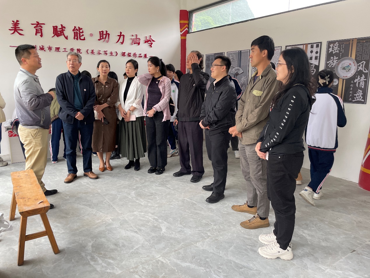 本网讯(记者 朵朵 程东玲 陈磊)4月24日,建筑学院院长陆琦、书记陈磊携师生19人前往连南瑶族自治县三排镇油岭村举办“美育赋能 助力油岭”课程作品展,广东省一流本科课程《美术写生》课程组全体教师、学院团委负责人以及连南瑶族自治县职业技术学校师生代表参加了活动。