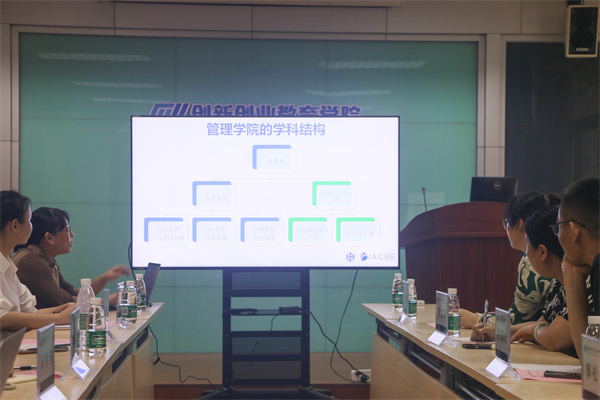 会议伊始,刘飞燕对庹兰芳等一行四人的到来表示热烈欢迎,从学校的定位与办学使命出发,结合学院学科结构、组织框架、师资情况等方面进行详细介绍,并根据学院使命、管院特色、教学系统特征等方面表示“学院发展使命驱动,专业建设成果导向”的理论与实践相结合的成果管理。刘飞燕指出,广州城市理工学院是一所培养应用型人才的院校,教学方法采取理论和实践相结合,参考IACBE理念,以成果为目标导向的教育理念,管理学院已有六个专业通过IACBE国际认证。