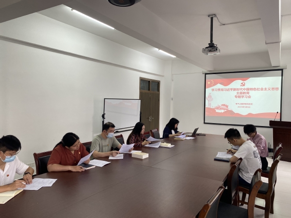 本网讯(记者 许晗星)为强化理论武装,深学细照笃行,推动学习贯彻习近平新时代中国特色社会主义思想主题教育深入开展,5月9日上午,电气工程学院在B6-403举办学习贯彻习近平新时代中国特色社会主义思想主题教育专题学习会。学院党总支副书记符红勋、副院长沈娜,各党支部书记参加学习。