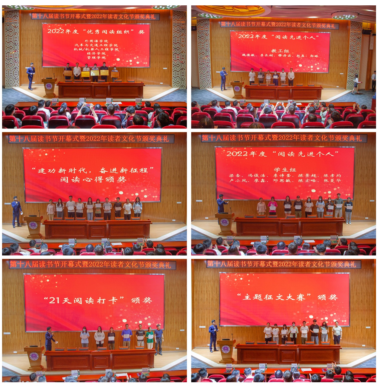 随后,举行颁奖典礼,对2022年度优秀阅读组织、2022年度优秀阅读个人、“建功新时代,奋进新征程”好书荐读心得分享、“家乡的变化”主题征文大赛、“新媒体形象IP”设计大赛、21天阅读打卡等活动获奖单位及个人进行了表彰颁奖。