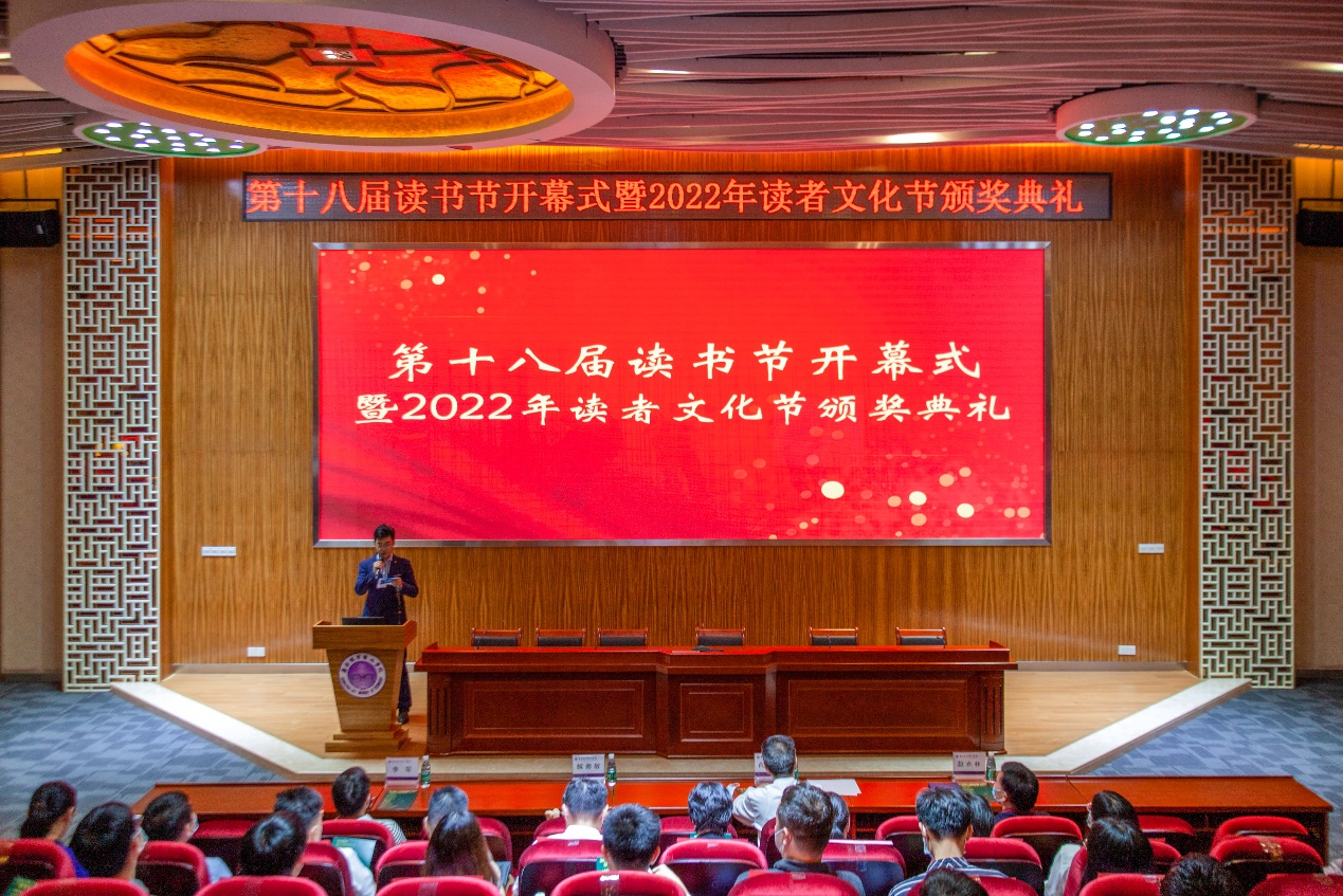 本网讯(记者 郭韵焓 梁杏)5月9日下午,我校第十八届“书香满校园,阅读新时代”读书节开幕式暨2022年读者文化节颁奖典礼在行政楼703报告厅举行。副校长尚启超、魏德敏,各学院、机关部处负责人及获奖师生出席本次活动。