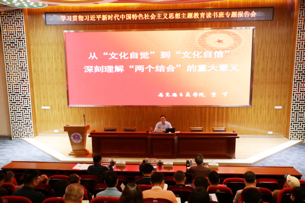 李军结合习近平总书记关于文化的重要论述,从习近平总书记在党的十九大报告中提到的“文化是一个国家、一个民族的灵魂。文化兴国运兴,文化强民族强。没有高度的文化自信,没有文化的繁荣兴盛,就没有中华民族伟大复兴”开篇引入,从“文化自信是民族生存和发展的重要力量”“文化自信在近代以来的历史发展进程”“深刻理解‘两个结合’重大意义”“推动中华优秀传统文化创造性转化、创新性发展”四个方面作《从“文化自觉”到“文化自信” 深刻理解“两个结合”的重大意义》专题报告。