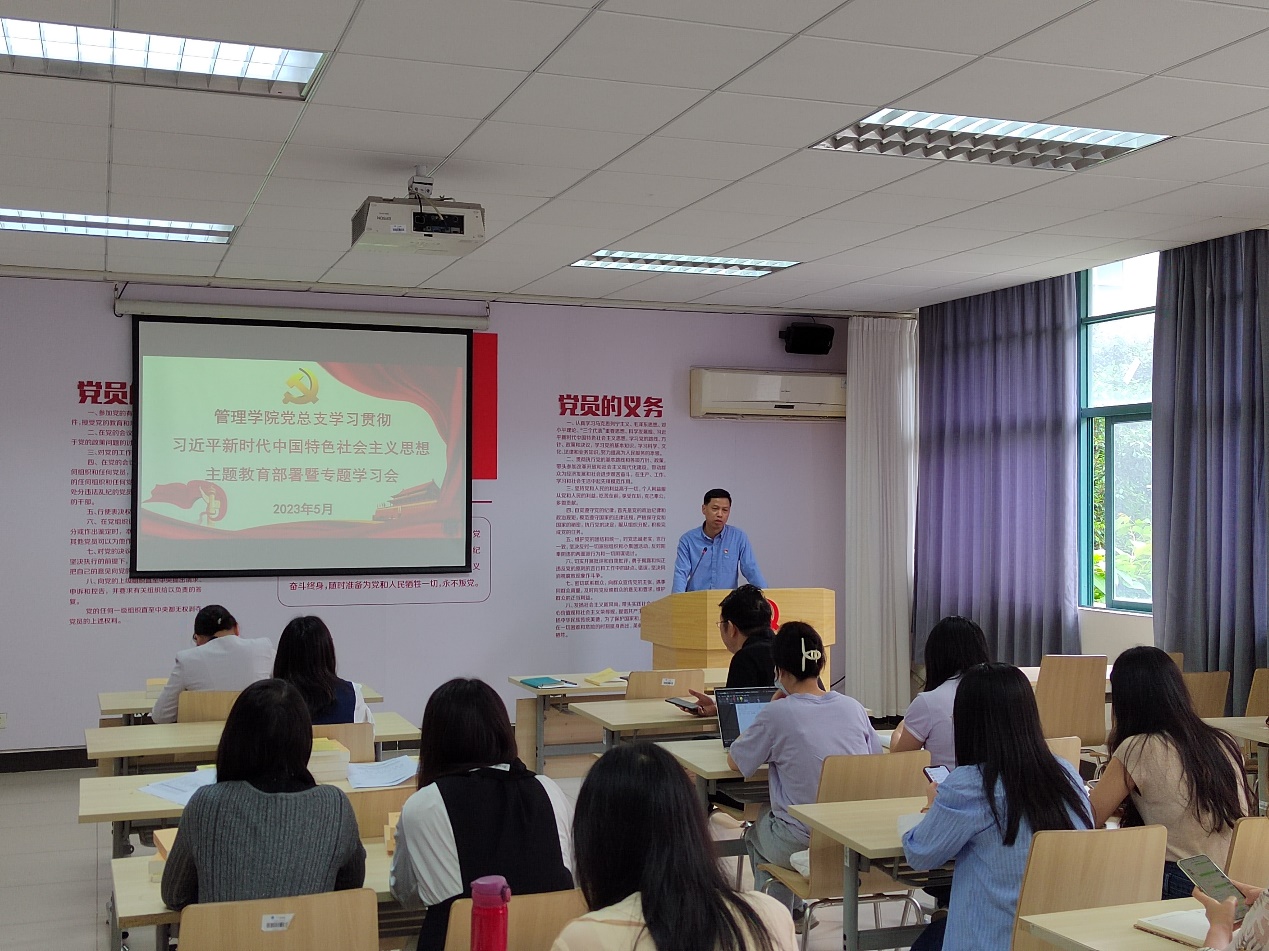 本网讯(记者 戴杰 应澎)5月11日下午,管理学院在A8-203会议室召开学习贯彻习近平新时代中国特色社会主义思想主题教育部署会暨专题学习会,管理学院党总支书记李大章主持会议并领学,学院党总支委员、各教工党支部和学生党支部负责人参加学习。