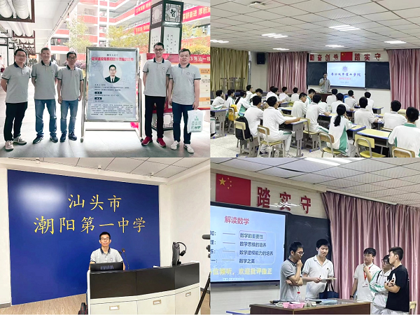 4月25、26日,数据科学与大数据技术系主任吴丽镐分别在汕头市潮阳实验学校、潮阳第一中学举行主题为“数学建模竞赛和数学思维培养”讲座。汕头市潮阳实验学校、潮阳第一中学办学业绩辉煌,均为国家级示范性普通高中,近三年本科上线率高达97%以上。两所中学校领导均热情接待学院招生宣传团队,并向到访的老师们介绍学校发展历史及学生考取名校情况。在讲座上,吴丽镐从数学的发展史出发,介绍数学在各领域中的应用研究,指出生活中处处离不开数学,强调高中生学习数学的重要性,并向学子们传授数学思维及建模能力的培养方法。讲座深受学生的喜爱,现场气氛热烈,掌声不断。讲座结束后,学生纷纷针对讲座内容与吴丽镐进行现场沟通交流。汕头市潮阳第一中学刘主任表示:“非常感谢高校教授能够抽出时间到校举办讲座,本次讲座对中学生数学思维能力的培养有着极大的帮助”。
