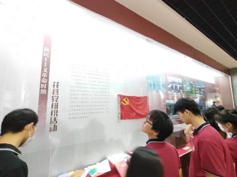 参加研学的师生重点学习了花县人民的革命斗争与花都区的新旧变迁,一起重温“黄花岗起义”的壮烈革命历史。在新民主主义革命时期花县党组织活动的展台前,师生重温激荡人心的革命岁月,深刻感受到了中国共产党人为人民谋幸福、为中华民族谋复兴的初心使命。