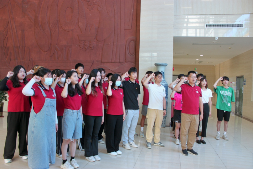 研学现场,学生第八党支部书记王大玲老师领学了习近平总书记关于档案工作重要指示精神,表示档案忠实地记录了文明发展的历史记忆,是文化发展的重要载体,“没有高度的文化自信,没有文化的繁荣兴盛,就没有中华民族的伟大复兴,应当充分发挥档案在坚定文化自信中的作用”。学生第六党支部书记熊洲仕老师向研学人员阐释了档案工作与中华民族伟大复兴之间的密切联系,表示档案作为文明的产物和文化的载体,具有深厚的文化基因,蕴藏着柔性文化内容,其中丰富的文化内涵和浩繁的知识载量,对做好新时代文化建设工作、坚定文化自信具有重要作用。在实践研学活动中,师生党员还一起重温了入党誓词。
