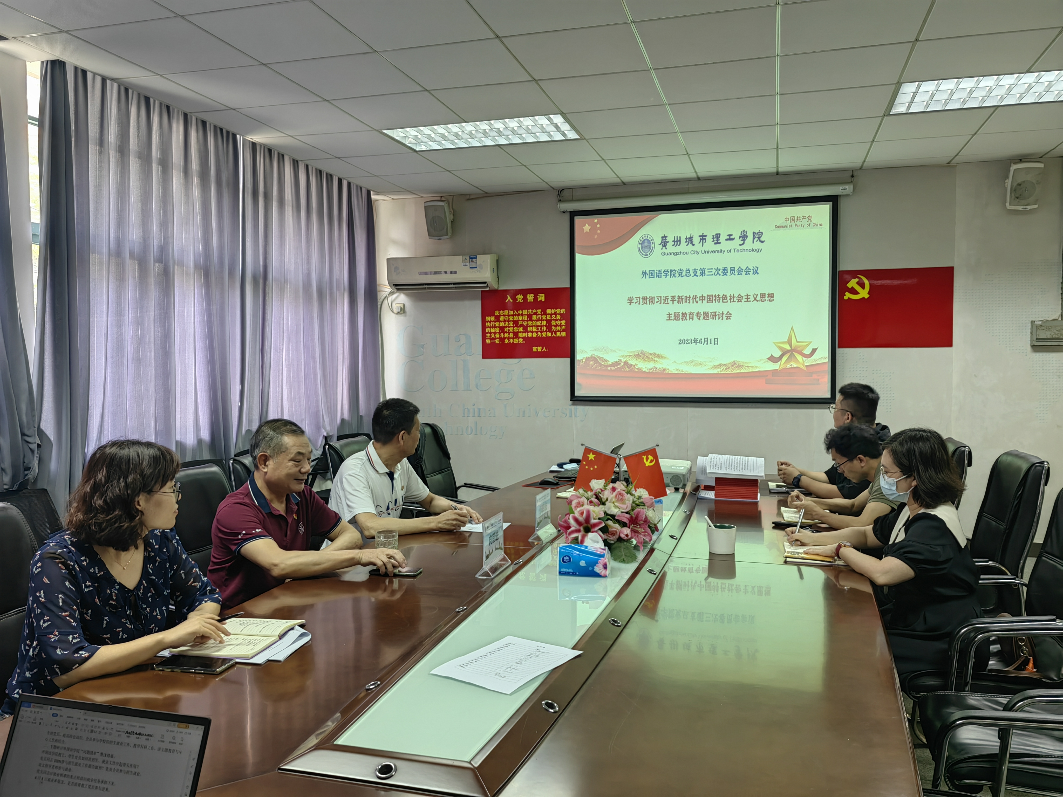 本网讯(记者 黄海燕)为推进学习贯彻习近平新时代中国特色社会主义思想主题教育走深走实,坚持两手抓两促进,推动主题教育与学院教学科研、招生就业中心工作紧密结合。6月1日下午,外国语学院党总支召开本学期第三次总支委员会会议,开展学习贯彻习近平新时代中国特色社会主义思想主题教育专题研讨。专题研讨主题教育调查研究“问题清单”之一:“教工党员如何在学院思想政治工作中发挥引领作用,提高政治站位,稳招生、扩就业,提质量,迎评估”。会议由党总支书记张四友主持,学院院长向前进、副院长乔世燕,及其他党总支委员参加专题研讨。