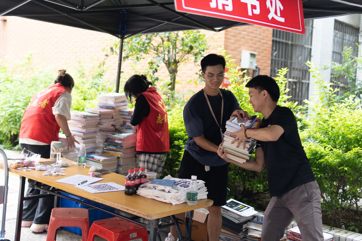 骄阳似火,却不及毕业生捐赠图书、留爱母校的热情,活动现场气氛热烈。志愿者忙前忙后,挥汗如雨,将图书整理分类,协助搬运;毕业生搬上搬下,亲手将一本本图书送师弟师妹手中。专业教材、教辅资料、知识百科、名著小说……一本本书籍上镌刻着大学四年的奋斗印记,也承载着广州城理四年的青春过往。