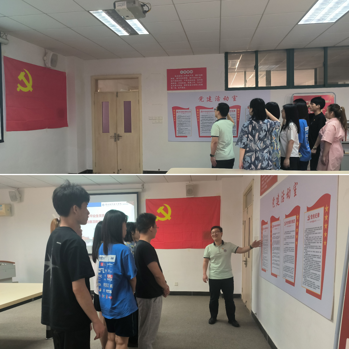 会议最后,由支部书记刘建斌指导毕业生党员组织关系转接,并为党员佩戴上党员徽章,嘱咐同学们牢记党员身份,不忘初心和使命。陈磊带领全体党员重温入党誓词,认真学习党章党员义务的相关要求。