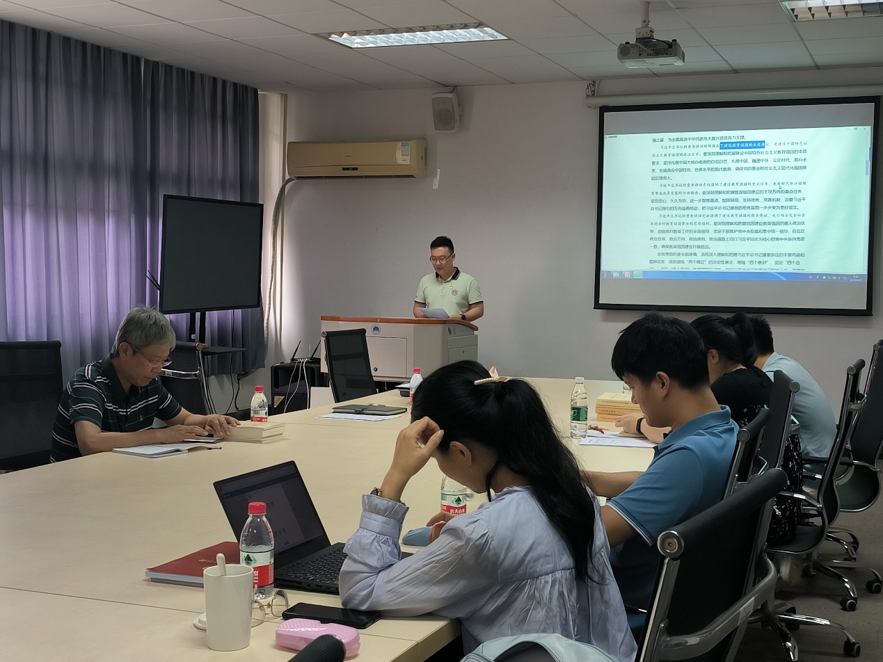 本网讯(记者 陈磊)6月19日上午,建筑学院党总支理论学习中心组举行第三次集体学习,深入学习习近平总书记在中共中央政治局第五次集体学习时的重要讲话精神,专题学习以中国式现代化全面推进中华民族伟大复兴的使命任务,贯彻落实教育部及省委教育工委师德集中学习教育工作部署会议精神,推进主题教育下一阶段工作。