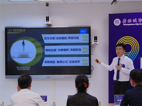 大赛在庄严的国歌声中拉开帷幕。魏德敏介绍了莅临比赛现场的专家评委和领导嘉宾,并指出学校一直高度重视创新创业教育工作,努力构建具有“广州城理”特色的民办高校双创教育体系,力求以大赛为抓手,推动成果转化和产学研用融合,形成以创新引领创业、以创业带动就业的新局面,争取达到“以赛促教、以赛促学、以赛促创”的目的。
