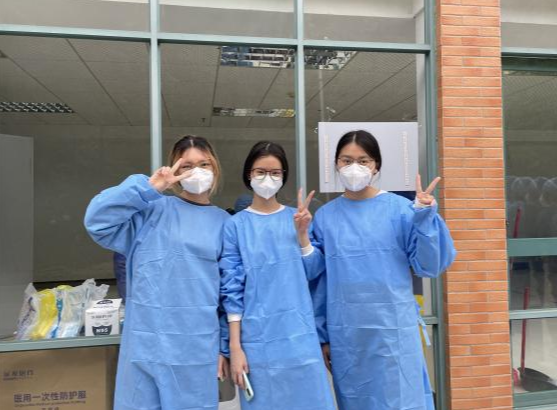 朱安淇在核酸检测现场做志愿者(右一)(黄海荣 摄)