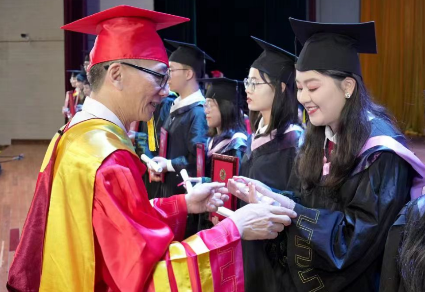 校长吴波为朱安淇颁发“2023届校级优秀毕业生”荣誉证书(学生传媒中心 陈靖岚 摄)