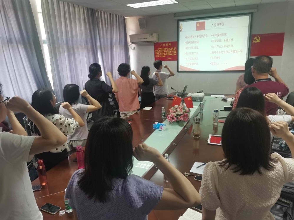 在庄严的氛围中,全体党员面向鲜红的党旗,郑重地举起右手,庄严宣誓。通过宣誓,党员们重温入党誓词,再次坚定了听党话、跟党走,不忘初心、牢记使命,敢于担当,为共产主义奋斗终身的决心。最后,全场共同高唱《没有共产党就没有新中国》。