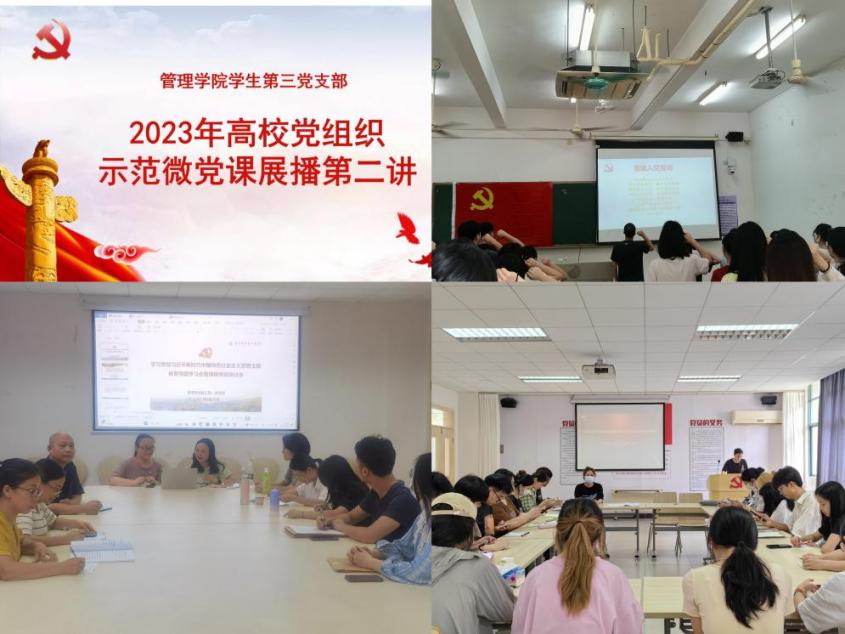 学生第三、第七党支部组织观看学习2023年高校党组织示范微党课。此次微党课邀请了部分高校党组织书记、先进团队、模范人物、优秀学生等,以故事片和纪录片的形式全面展现主题教育,立体呈现改革发展成绩,引领广大师生党员坚定理想信念,激励担当作为,充分发挥党员先锋模范带头作用。此外,学生第三党支部还通过读书会形式,集中学习《习近平关于调查研究论述摘编》、《论党的自我革命》等主题教育学习书籍,扎扎实实读原著、学原文、悟原理,分享学习心得。