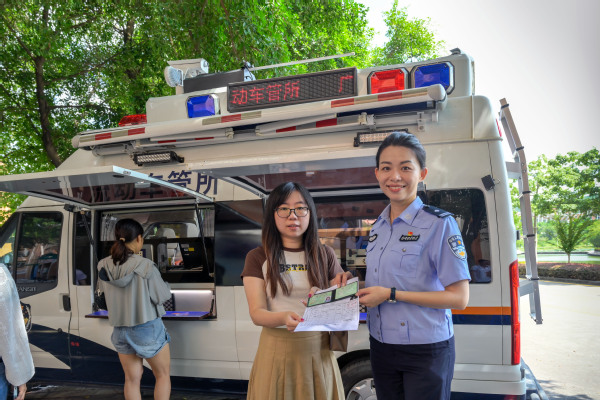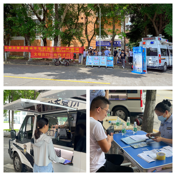 活动现场可办理的事项包括补领机动车驾驶证转入换证、驾驶证期满换证、补换领行驶证、行驶证变更信息等,花都交警的热情服务、简便高效的办事流程,让师生们实实在在地感受到了车管所上门服务带来的便捷。