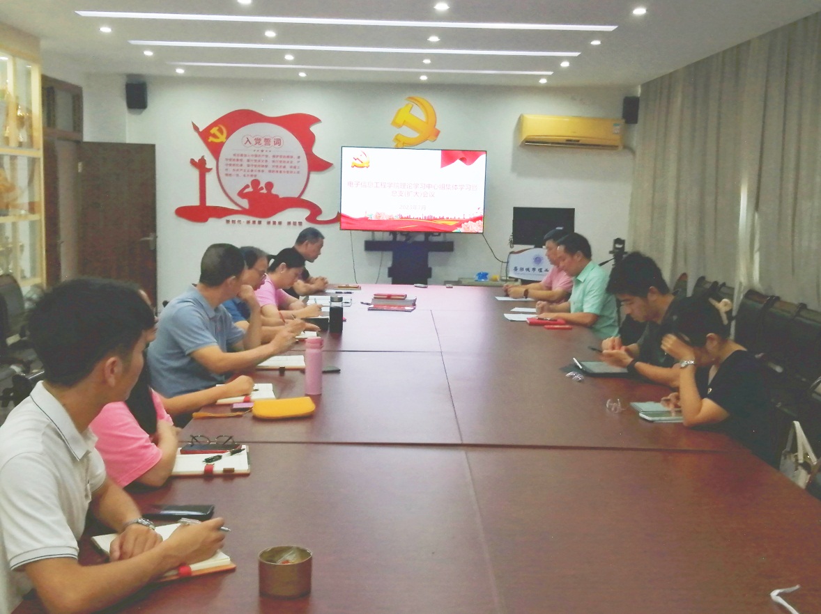 本网讯(记者 阮显政)为深入开展学习贯彻习近平新时代中国特色社会主义思想主题教育,切实加强政治理论学习,电子信息工程学院于7月11日上午在B6-503会议室召开党总支扩大会议暨理论学习中心组集体学习。学院党总支书记、院长何志伟,常务副书记罗自力以及党总支委员、支部书记参加会议。会议由罗自力主持。