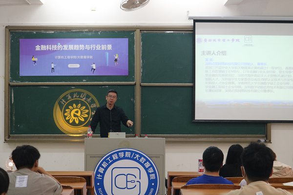 4月11日下午,学院邀请深圳点宽网络科技有限公司创始人、董事长黄嵩,于A5-107举办“金融科技的发展趋势与行业前景”主题讲座。学院副院长蔡沂出席讲座并致辞,她指出,“金融科技”日益成为一个全新概念,它不仅仅是“金融与科技”的简单叠加,而是“金融”和“科技”在碰撞中不断融合,形成的以技术驱动的金融创新。在此趋势下,我校也增设了软件工程+投资学专业,顺应时代的发展,面向金融行业培养既懂IT技术、又懂金融业务的复合型人才,使其能够从事金融运营管理、创新产品研发、基础设施建设、系统开发及测试运维等方面工作。