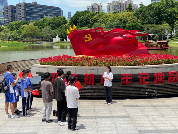 7月24日,团队组织深圳市青少年赴南山党建公园开展研学活动。南山党建公园地处深圳市南山区科技园,集思想教育、精神传承、生态保护、城市休闲于一体,是南山区创建全国城市基层党建先锋区的一个缩影。