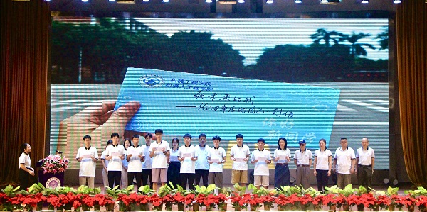 在学生的欢呼声中,典礼迎来了致未来的我——给四年后的自己写一封信环节。所有的大一新生在刚入校时给四年后的自己写一封信,等到快毕业时拆开。每班派一名学生代表上台领取信封,学院领导,各教研室、实验中心和办公室负责人,教师代表上台为新生颁发信封。本活动以珍惜时光,展望未来为主旨,希望所有新生可以不负韶华,勇往直前。