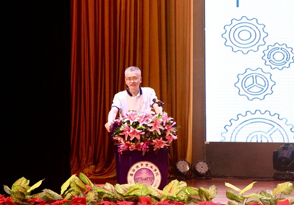 学院邀请王家淳博士作为教师代表发言。王家淳一方面简单介绍了学院的师资力量,希望大家抓紧时机,在短短四年的大学时光里珍惜时间,笔耕不辍;另一方面希望学生可以不断提升自身综合素质。在德智体美劳全面发展的道路上孜孜以求、勤学苦练。