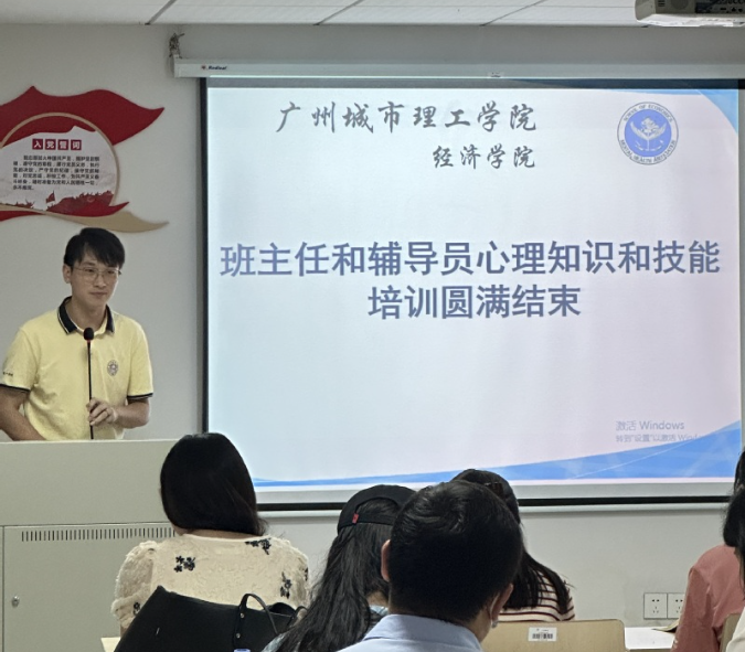 最后,经济学院学工办副主任张全胜作总结,教师是学生成长路上的引路人,对于学生的心理健康培养具有重要的引领作用。他表示,通过这次心理培训,希望辅导员和班主任可以更好地掌握心理谈话技巧,拉近与学生之间的距离,从而更好地交流沟通,正确引导学生走向正路,平平安安快乐的度过大学四年。
