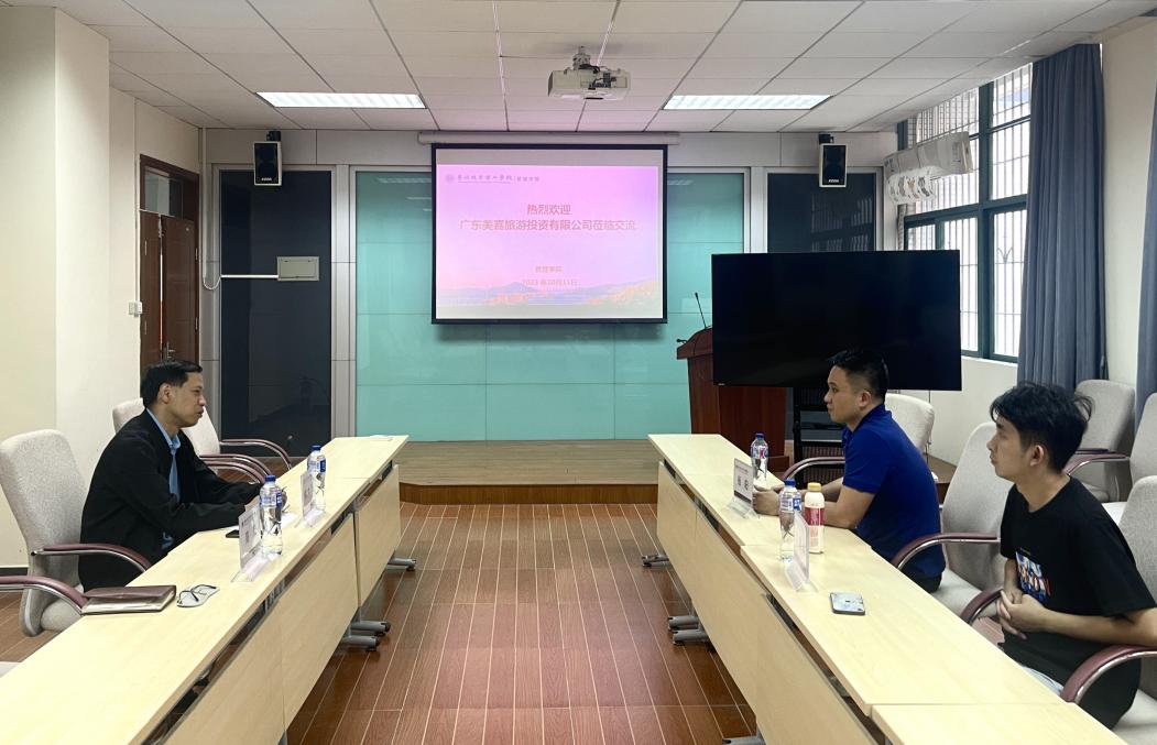 本网讯(记者 高煜)为推动产教融合,深化校企合作,实现校企资源整合与优势互补,10月11日下午,广州蝴蝶谷生态旅游区总经理杨阳一行来访我校管理学院。学院书记李大章、就业辅导员参加座谈。