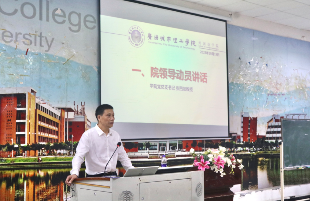 本网讯(记者 李彩兰)为了加强学风建设,提高学生学习积极性和考研意识,引导学生树立正确的考研目标,外国语学院于10月19日下午在A6-101召开2024年考研动员会暨考研规划讲座。外国语学院书记张四友、新文道考研徐奔、聚创考研朱海芹、学院学生工作办公室负责人、相关年级辅导员以及2021级、2022级有考研意愿的学生近300人参加动员会。