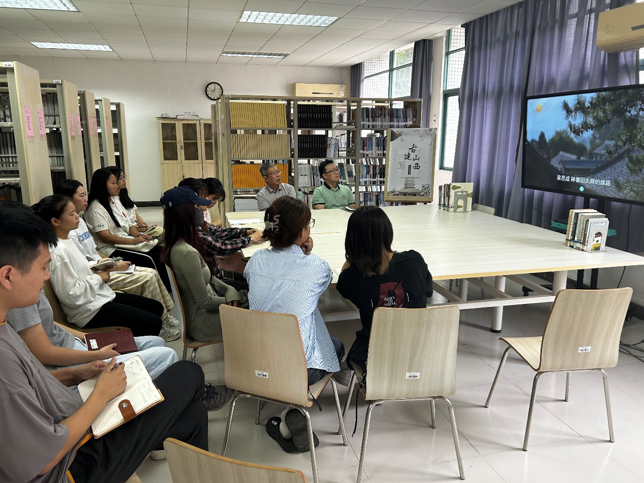 活动伊始,师生共同观看了《古建山西 向天再借千年》专题片。该影片是由栏目主持人、著名文化学者王鲁湘为讲述人,带领观众一起循着“梁林路”,探访晋祠、悬空寺、应县木塔、佛光寺、南禅寺等山西代表性古建筑,讲述梁思成、林徽因20世纪30年代四次探寻山西古建的真实历史故事,感受“晋源华夏,古建山西”深处的人文历史和文化魅力。