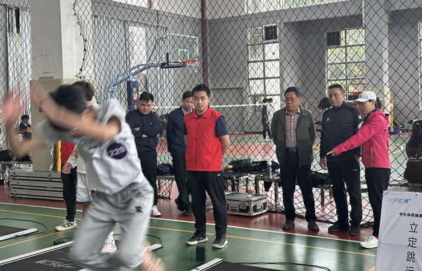 本网讯(记者 傅文涛)为全面贯彻落实《关于全面加强和改进新时代学校体育工作的意见》精神,推动《广东省全面加强和改进新时代学校体育工作行动方案》落地落实,进一步做好学生体质健康工作,11月13日,广东省教育厅体质健康测试第二工作组在组长陈莉萍的带领下到我校开展学生体质健康抽测工作。学校体育运动委员会主任、副校长刘洊波前往测试场馆指导测试工作开展,学校体育运动委员会副主任、体育部主任杨效勇和部分体育教师协助工作组完成测试工作,计算机工程学院书记罗军、管理学院书记李大章、珠宝学院书记刘喜锋以及相关学院辅导员全程陪同抽测同学们完成测试。