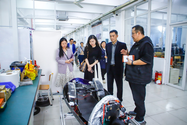 座谈会后,杜辉一行参观了我校汽车与交通工程学院多功能厅、机器人与人工智能工程中心与珠宝学院展厅,对我校实验教学环境、学生创新成果等给予了高度评价。