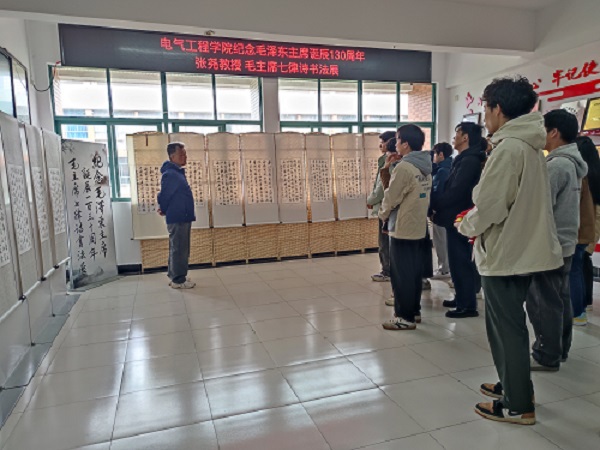 本网讯(记者 伍志轩)12月26日是毛泽东同志诞辰130周年纪念日。为铭记毛泽东同志的丰功伟绩和崇高风范,学习他的诗词的高远意境与丰富蕴涵,深刻体会他的革命心路历程、伟岸人格和光辉思想,12月19日,电气工程学院学生第一党支部在B6四楼中厅开展“书香诗韵·翰墨寄情——纪念毛主席诞辰130周年暨老教师讲红色诗词”主题党日活动,电气工程学院党总支副书记符红勋,党支部全体成员参加了本次活动。