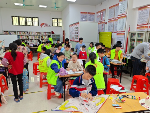志愿者们教小朋友们画画(李胜奇 摄)