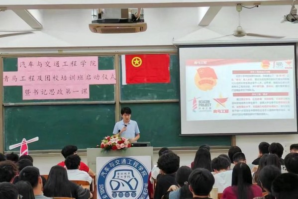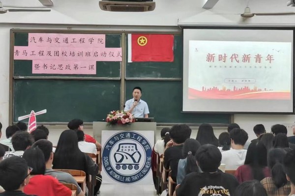本网讯(记者 刘粤昊)为进一步加强青年学生思想政治教育,培养新时代的青年马克思主义者,为实现中华民族伟大复兴的中国梦注入新活力。4月2日晚,汽车与交通工程学院于A5-205举办了青马工程及团校培训班启动仪式暨书记思政第一课。学院党总支书记林叙群,党总支副书记、学院团委学生会指导老师、青马工程及团校培训班全体学员和各年级团干部参加本次活动。