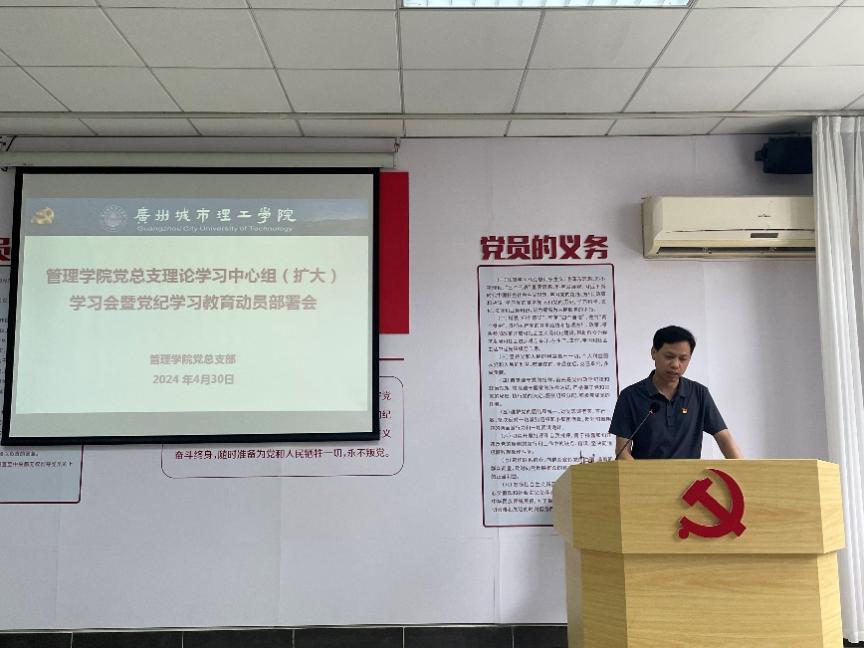 本网讯(记者 邓碧聪 熊洲仕)为贯彻落实学校党委关于党纪学习教育部署,开展好学院党纪学习教育。4月30日中午,管理学院在A8-203会议室召开理论学习中心组(扩大)学习会暨党纪学习教育动员部署会。管理学院党总支书记李大章主持会议,学院班子成员、党总支委员、各党支部书记等参加会议。