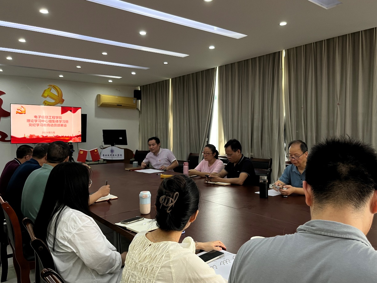 本网讯(记者 阮显政)为深入学习贯彻习近平总书记关于党纪学习教育的重要讲话和重要指示精神,贯彻落实学校党委关于党纪学习教育的相关部署,5月9日上午,电子信息工程学院在B6-503会议室召开学院理论学习中心组集体学习暨党纪学习教育动员部署会。学院党总支委员、各党支部书记、理论学习中心组相关人员参加会议。会议由学院党总支常务副书记罗自力主持。